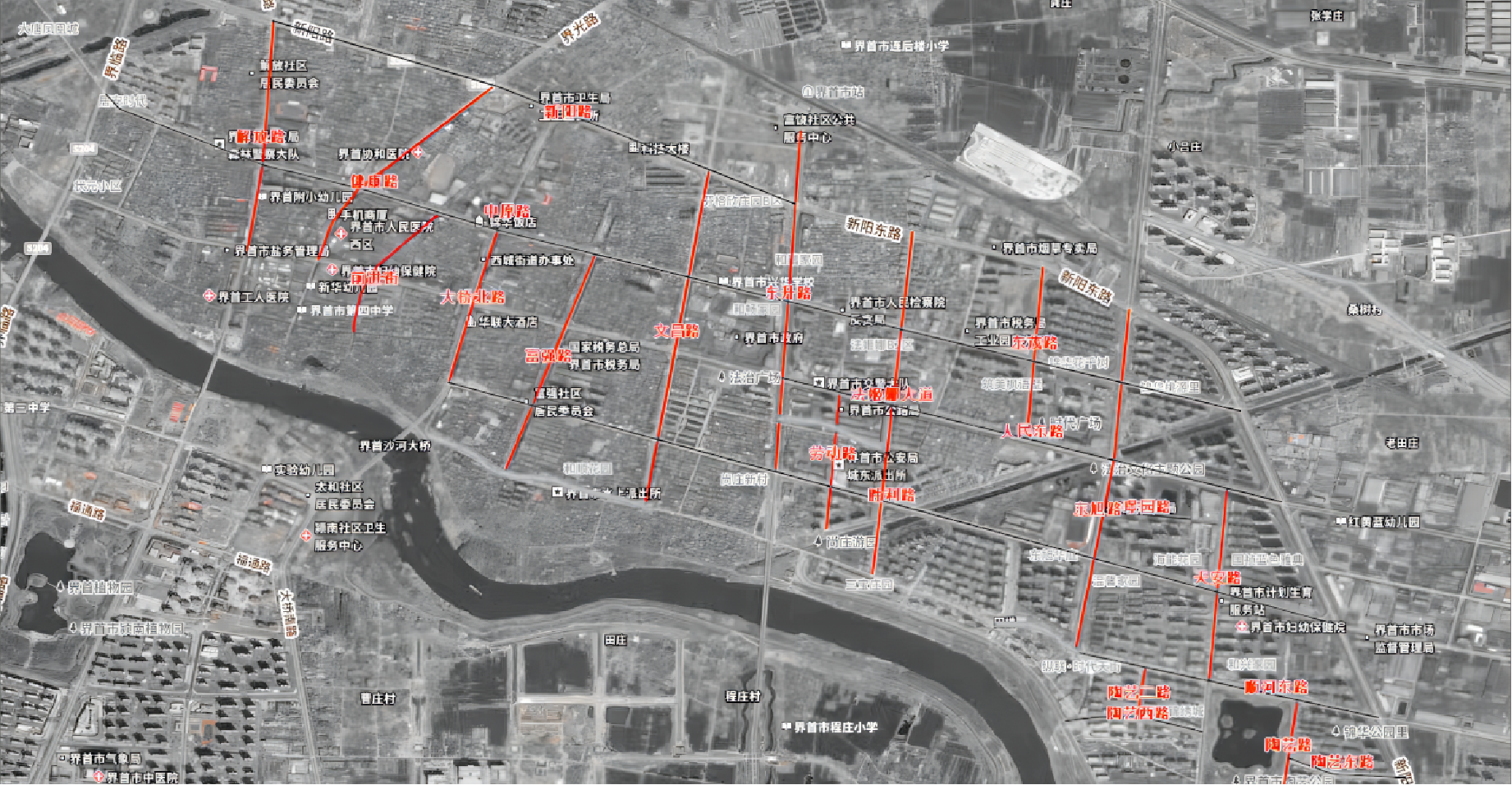 工程規(guī)模: 界首市城區(qū)22 條路段 6047 個(gè)泊位